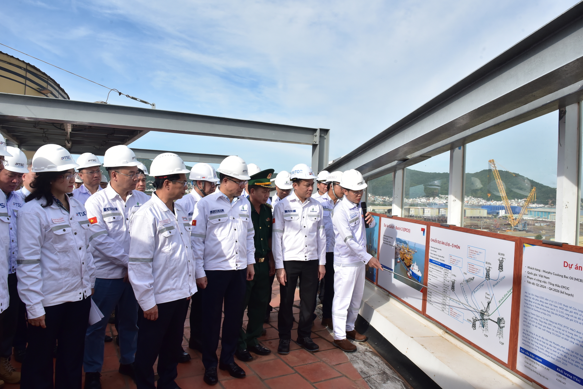 During the visit, the Deputy Prime Minister toured several key facilities at the Energy and Technical Logistics Industrial Center, including PTSC’s site office – the hub for project management and operations; the fabrication yard for major structures of the Block B – Ô Môn Gas-to-Power Project, a nationally significant project affirming PTSC’s position as Vietnam’s leading oil and gas EPC contractor; and the expanded Sao Mai – Bến Đình Yard, a strategic industrial base designed to simultaneously serve both traditional oil & gas projects and offshore renewable energy developments.