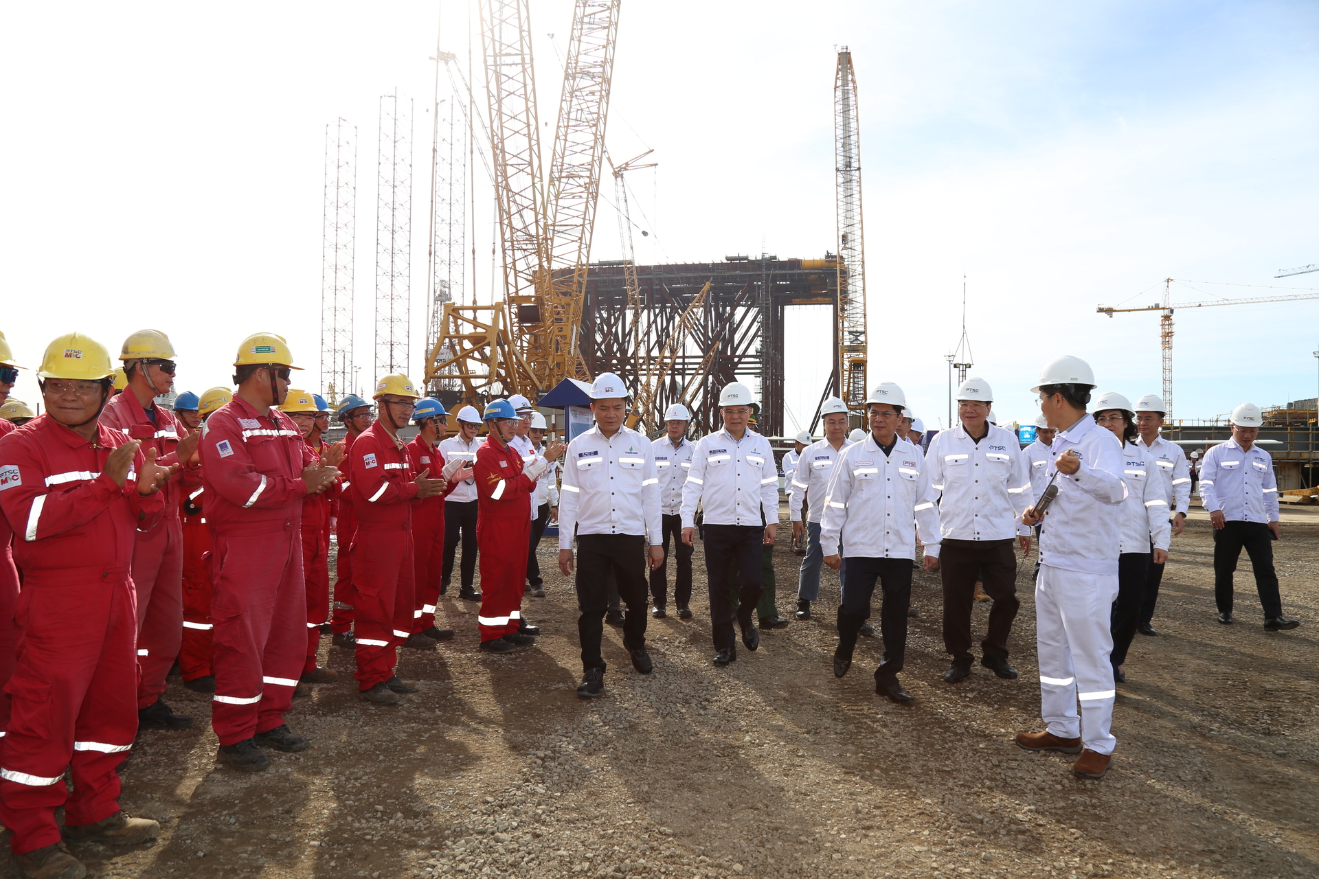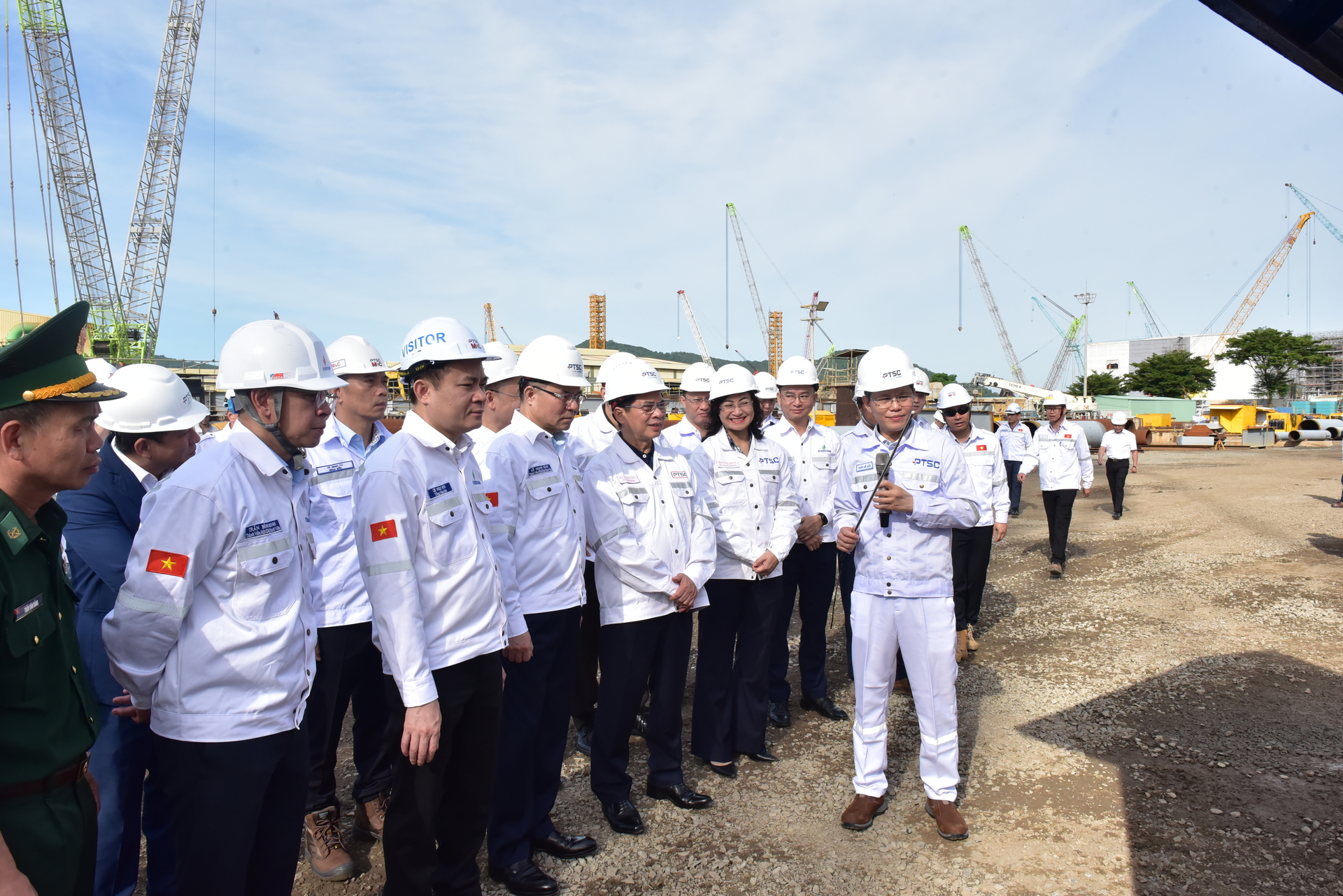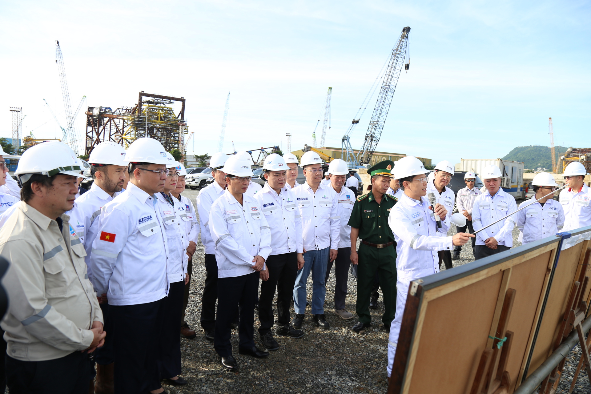 PTSC President and CEO Tran Ho Bac presents ongoing projects at PTSC’s fabrication yard