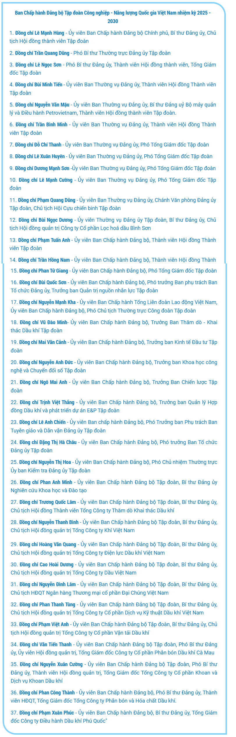 Ban Chấp hành Đảng bộ Petrovietnam khóa IV, nhiệm kỳ 2025-2030