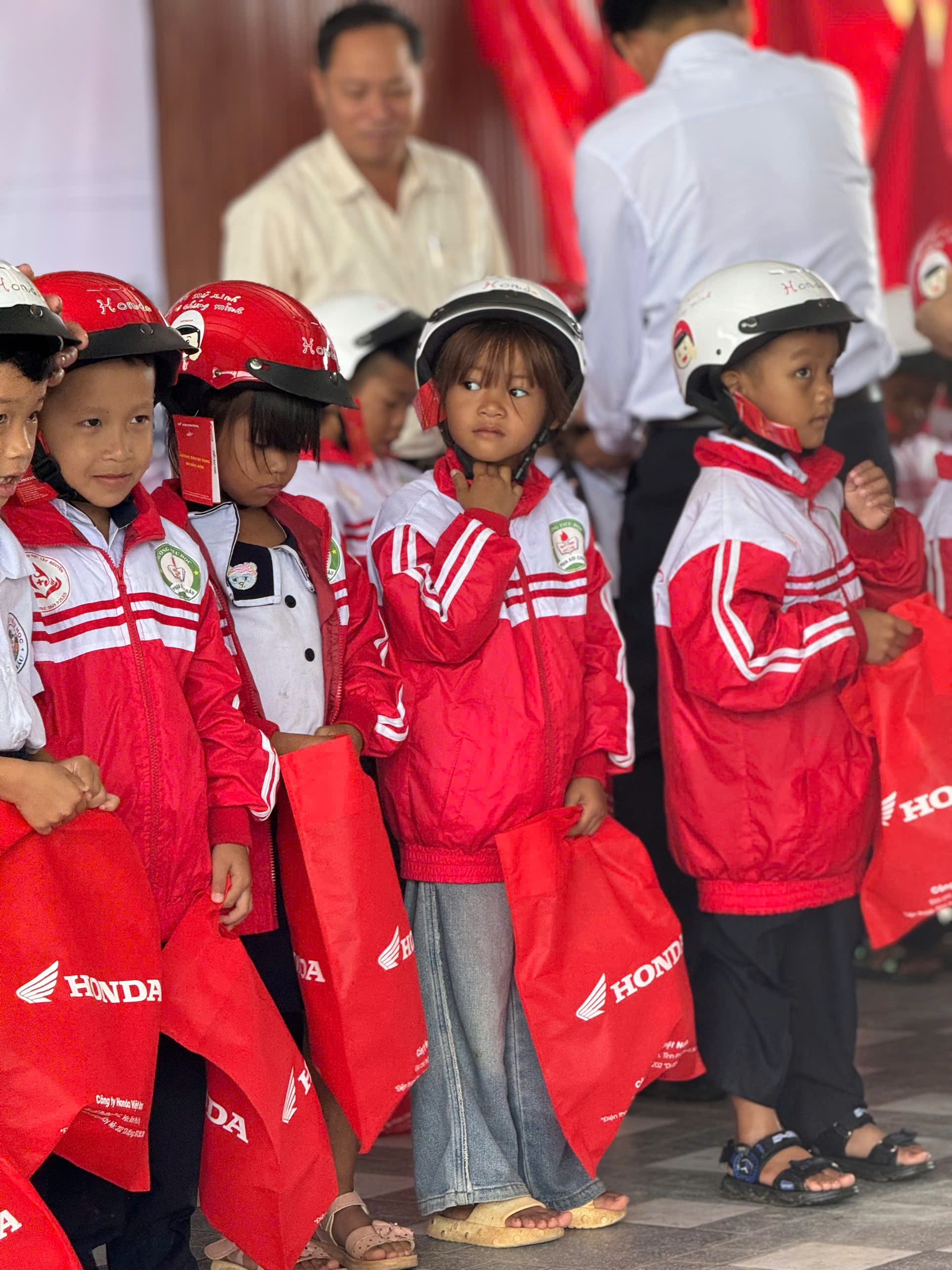 - Chương trình Trao tặng mũ bảo hiểm cho toàn bộ học sinh lớp 1 do đơn vị Honda kết hợp tài trợ.