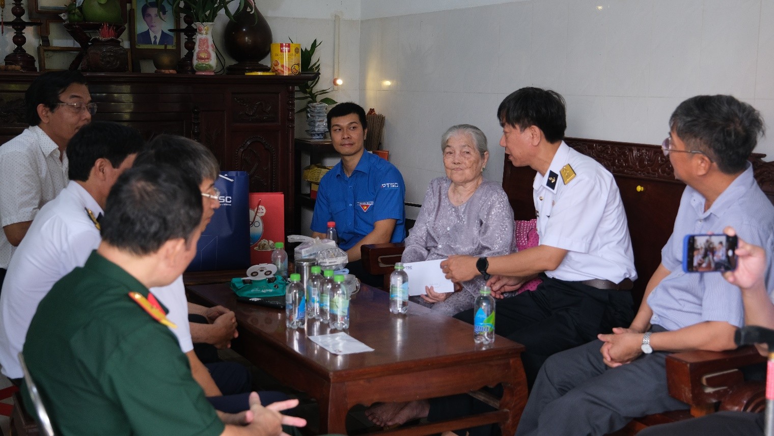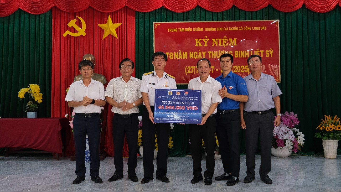 Cùng ngày, đoàn đã đến thăm và trao 46 phần quà với tổng trị giá hơn 49,9 triệu đồng cho các thương, bệnh binh đang được chăm sóc tại Trung tâm Điều dưỡng Thương binh và Người có công Long Đất, xã Long Hải, thành phố Hồ Chí Minh. Các đơn vị thành viên như PTSC M&C, PTSC Shipyard... cũng gửi tặng các phần quà thiết thực, bày tỏ tấm lòng tri ân đối với các cô, chú thương bệnh binh.