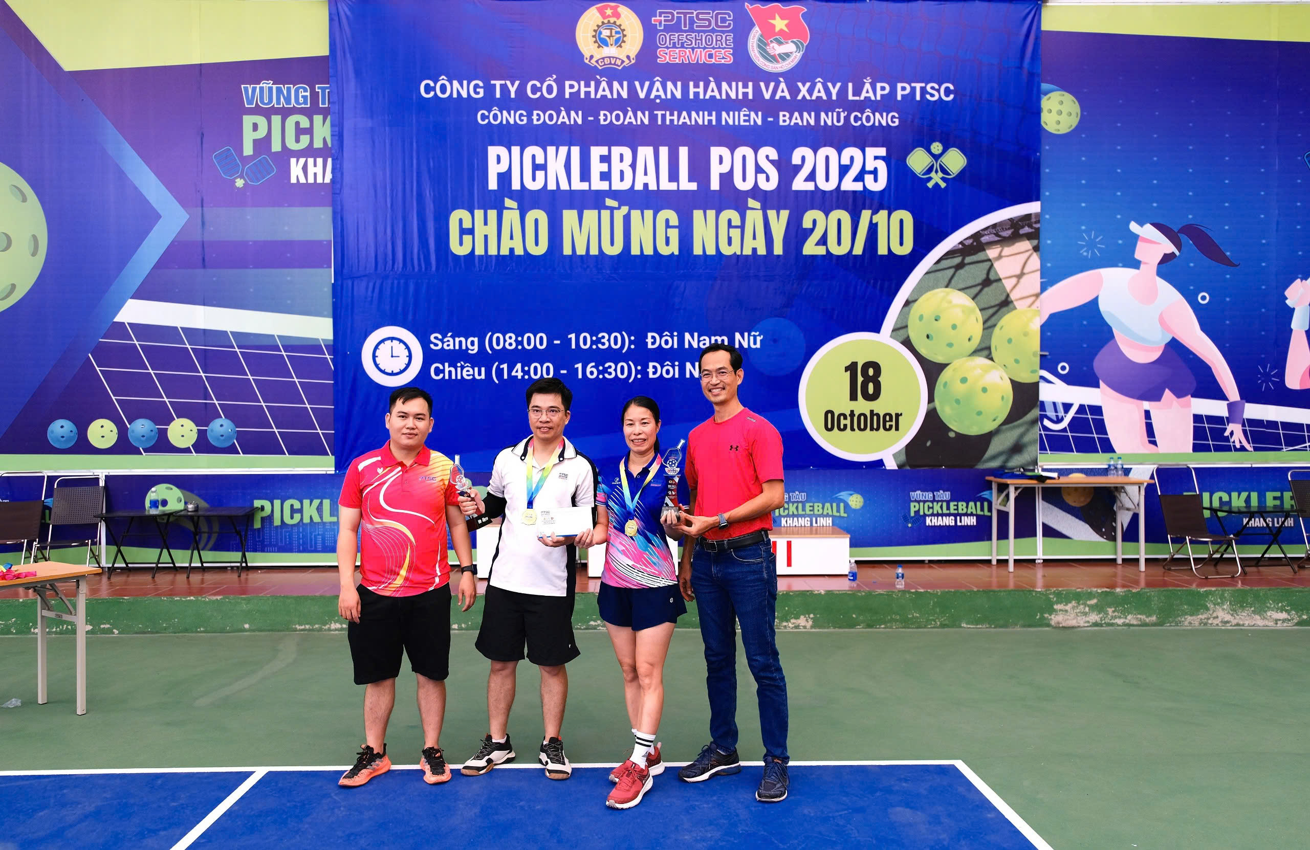Hào hứng, sôi nổi và đầy ắp tiếng cười là không khí tại Giải Pickleball POS 2025 diễn ra ngày 18/10 tại sân Khang Linh, Vũng Tàu. Hoạt động do Đoàn thanh niên Công ty Cổ phần Vận hành và Xây lắp PTSC (POS) phối hợp cùng Công đoàn và Ban Nữ công tổ chức, nằm trong chuỗi chương trình chăm lo đời sống tinh thần cho cán bộ công nhân viên (CBCNV), chào mừng Ngày Phụ nữ Việt Nam 20/10.