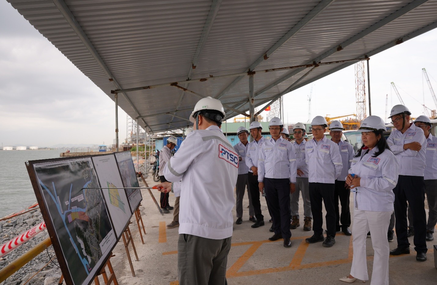 Tại buổi làm việc và thông qua chương trình khảo sát, Tổng công ty PTSC đã giới thiệu hiện trạng cơ sở hạ tầng tại khu căn cứ cảng cùng năng lực, kinh nghiệm triển khai các dự án điện gió ngoài khơi cho nhiều đối tác quốc tế. Trên cơ sở lợi thế sẵn có, phù hợp với Quy hoạch điện VIII điều chỉnh và gắn với mục tiêu bảo đảm an ninh năng lượng quốc gia theo Nghị quyết 70-NQ/TW của Bộ Chính trị, PTSC đã đề xuất thành lập Trung tâm công nghiệp – dịch vụ năng lượng tái tạo tại Phường Rạch Dừa, TP. Hồ Chí Minh.