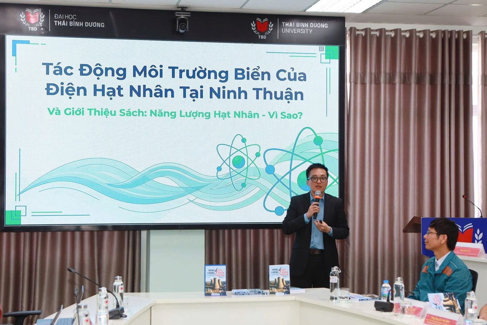 Buổi tọa đàm sáng 21/01/2026 tại Trường Đại học Thái Bình Dương (Nha Trang) tập trung phân tích toàn diện các khía cạnh môi trường khi triển khai nhà máy điện hạt nhân ven biển, lấy dự án Ninh Thuận làm trường hợp thảo luận. Sự kiện quy tụ các chuyên gia nghiên cứu năng lượng, nhà quản lý, giảng viên và sinh viên; trong đó có TS. Phạm Tuấn Hiệp (EDF, Tổng thư ký VietNuc), TS. Lê Anh Vân (Phó Hiệu trưởng Trường Đại học Thái Bình Dương) và ông Trần Sĩ Chương (chuyên gia kinh tế, cựu kỹ sư điện).