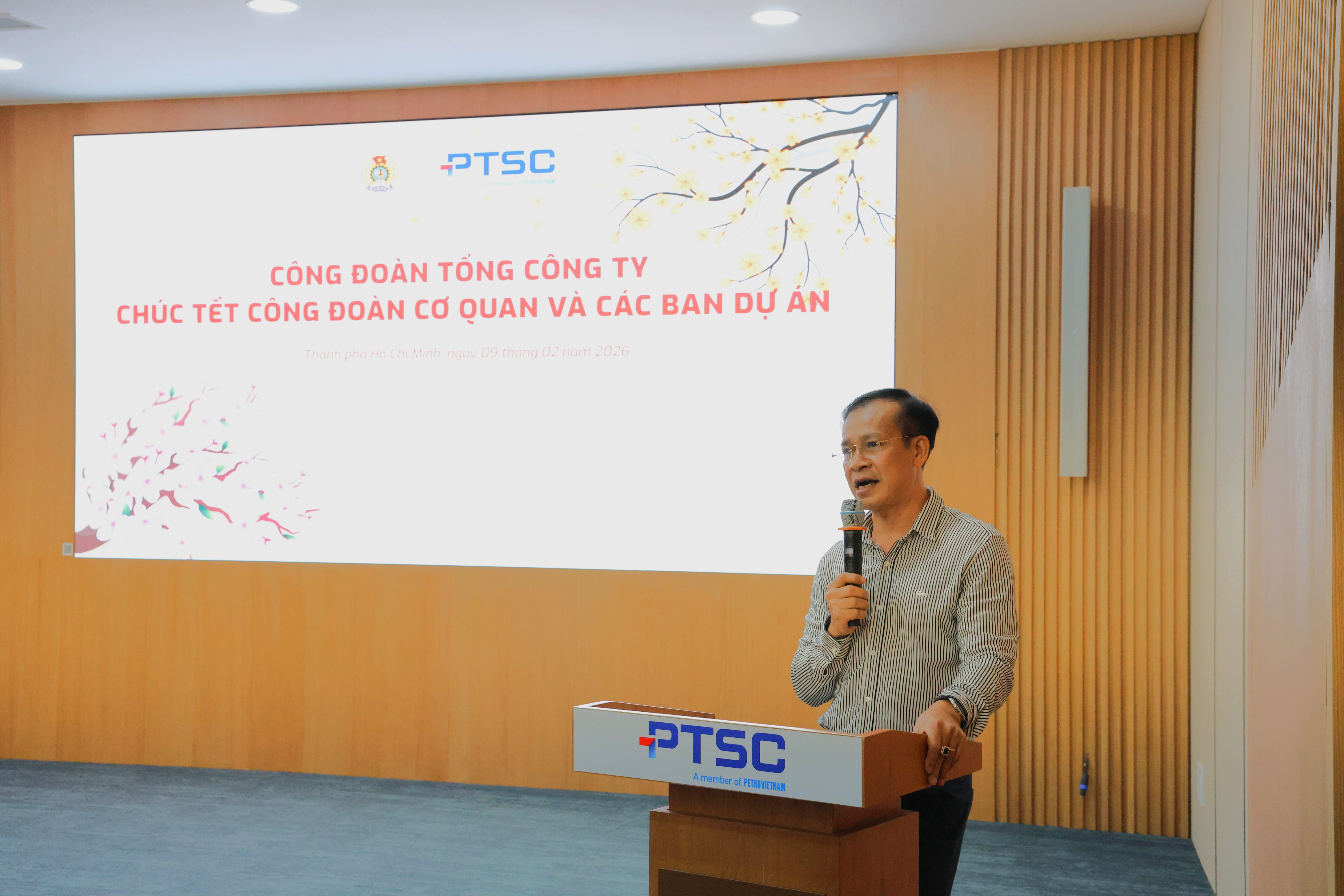 Sáng ngày 09/2/2026, trong không khí phấn khởi của những ngày đầu Xuân năm mới, Công đoàn Tổng công ty PTSC đã tổ chức buổi thăm hỏi, chúc Tết Công đoàn Cơ quan Tổng công ty và các Ban dự án EPCI#1 và Ban dự án LSPET. Đây là hoạt động thường niên mang ý nghĩa thiết thực, thể hiện sự quan tâm sâu sắc của Công đoàn đối với CBNV và người lao động đang tham gia làm việc tại các Dự Án quan trọng của Tổng công ty.