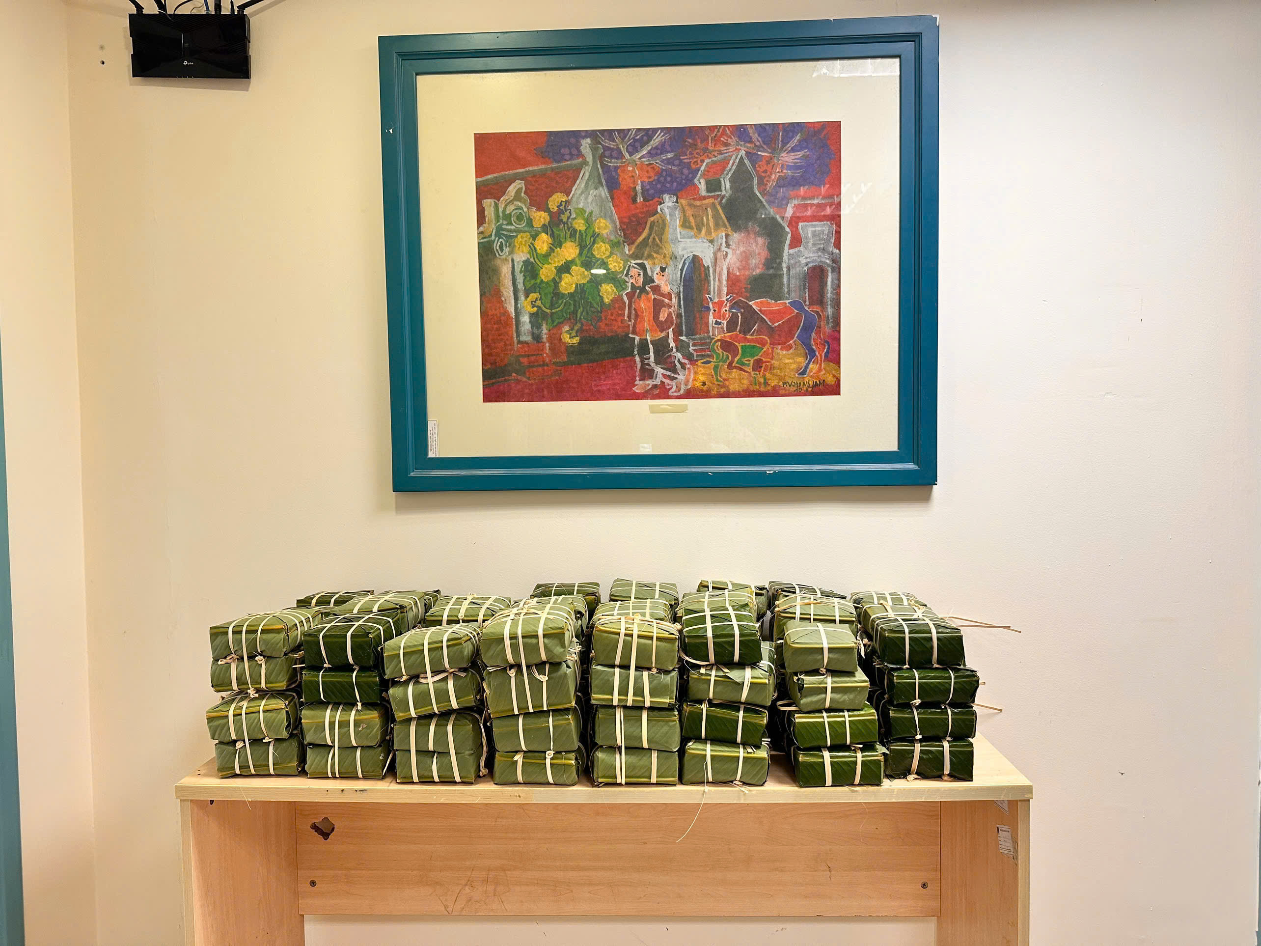 Đêm xuống, mọi người lại quây quần bên bếp lửa, thay nhau canh nồi bánh, kể chuyện cuối năm, chia sẻ những dự định mới. Ngọn lửa hồng cháy đều, hơi nước nghi ngút, tiếng cười xen lẫn tiếng củi tí tách… tạo nên một khoảng thời gian thật ấm áp và gần gũi. Khoảnh khắc được mong đợi nhất là khi bánh chin, mọi người cùng nhau vớt bánh, chuyền tay từng chiếc còn nóng hổi, rồi tỉ mỉ ép bánh cho ráo nước, ai cũng thấy háo hức như đang chạm vào thành quả của chính mình. Những chiếc bánh xếp ngay ngắn, xanh màu lá, thơm mùi nếp mới — giản dị mà đầy tự hào. Không chỉ là chuẩn bị một món ăn ngày Tết, hoạt động gói bánh còn là dịp để mọi người thêm gắn kết, lưu giữ hương nếp mới, mùi lá dong, hơi ấm bếp lửa… và hơn hết là tinh thần đoàn kết của tập thể PV Shipyard.