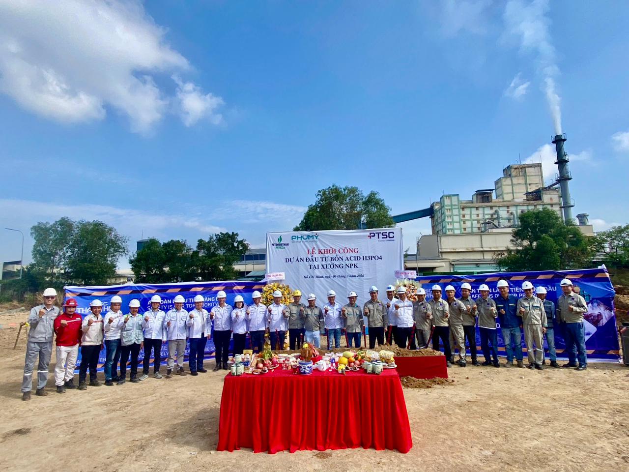 Ngày 06/3/2026, tại Nhà máy Đạm Phú Mỹ, Khu Công nghiệp Phú Mỹ 1, thành phố Hồ Chí Minh, Chủ đầu tư Tổng công ty Phân bón và Hoá chất Dầu khí – CTCP (PVFCCo) và nhà thầu Tổng công ty Cổ phần Dịch vụ Kỹ thuật Dầu khí Việt Nam (PTSC) đã long trọng tổ chức lễ khởi công “Dự án đầu tư bồn Acid Phosphoric (H3PO4) tại xưởng NPK”. Dự án này là một trong những dự án hạ tầng trọng điểm của Chủ đầu tư PVFCCo nhằm nâng cao năng lực tồn trữ nguyên liệu Acid, góp phần hoàn thiện chuỗi sản xuất, nâng cao năng lực vận hành, tối ưu hoá hoạt động sản xuất của tổ hợp Nhà máy Đạm Phú Mỹ.